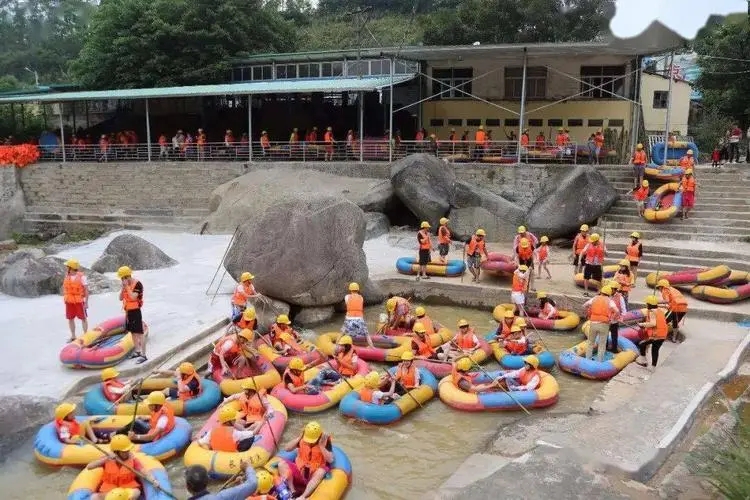 完整的现代服务接待设施。在您与大自然交融、对话和摔打之后,从原始的荒蛮质朴中回到当代物质文明的环境中,体味到从"远古"到现代的跨越和回归。为"福建第一漂"配套服务的"漂流酒店"拥有三星级标准的标准房、套房、大餐厅、雅室包厢、商务中心;功能齐全的卡拉OK歌舞厅、KTV、RTV等休闲娱乐设施;多功能会议厅,为您提供全方位的服务。漂流酒店还可以按您的需要举办露营、烧烤、篝火晚会等。惊险富有激情的漂流活动,完善的配套服务,再加上训练有素的专业人员的导、护漂,"福建第一漂"以"宾客至上、服务第一"为宗旨,尽可能让每一位游客有漂流一回,回味三秋的依恋感。