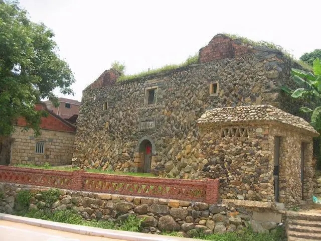 从“寻梦谷”的飞瀑流泉折返“十里蓝山”的凯旋门,途经长泰的明清古村落——“三重”,尽管是擦肩而过,没有入村游走,但村肩的这一幢石垒的古院墙还是以它傲立的仓雄令我们心头痒痒,卵石的墙脊上蔓草坚挺,让人想起“春田牛背鸠争落,野店墙头花乱开”诱人的生态,于是车停烈日下,对它进行两三分钟的顶礼膜拜,并仰头将其的里外摄入镜头,好回家细细品味,反复研判……